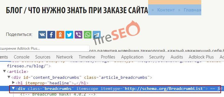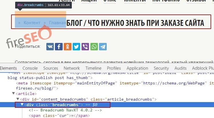Для начала нужно проанализировать сайт на наличие хлебных крошек.