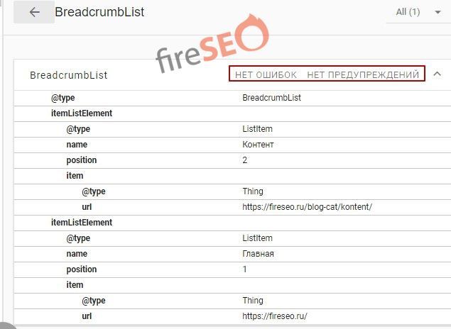 В итоге, после успешного добавления микроразметки, мы увидим следующие результаты проверки с помощью проверки Google.