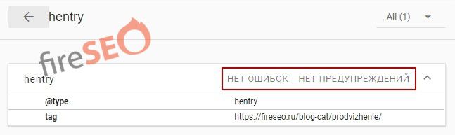 Но, при этом инструмент для проверки микроразметки от Google – абсолютно спокойно сообщает, что нет никаких ошибок и никаких предупреждений по этому поводу.(Ссылка на проверку страницы.)