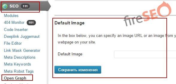 Заходим по следующему пути SEO Ultimate -> Open Graph -> Default Values -> Default Image