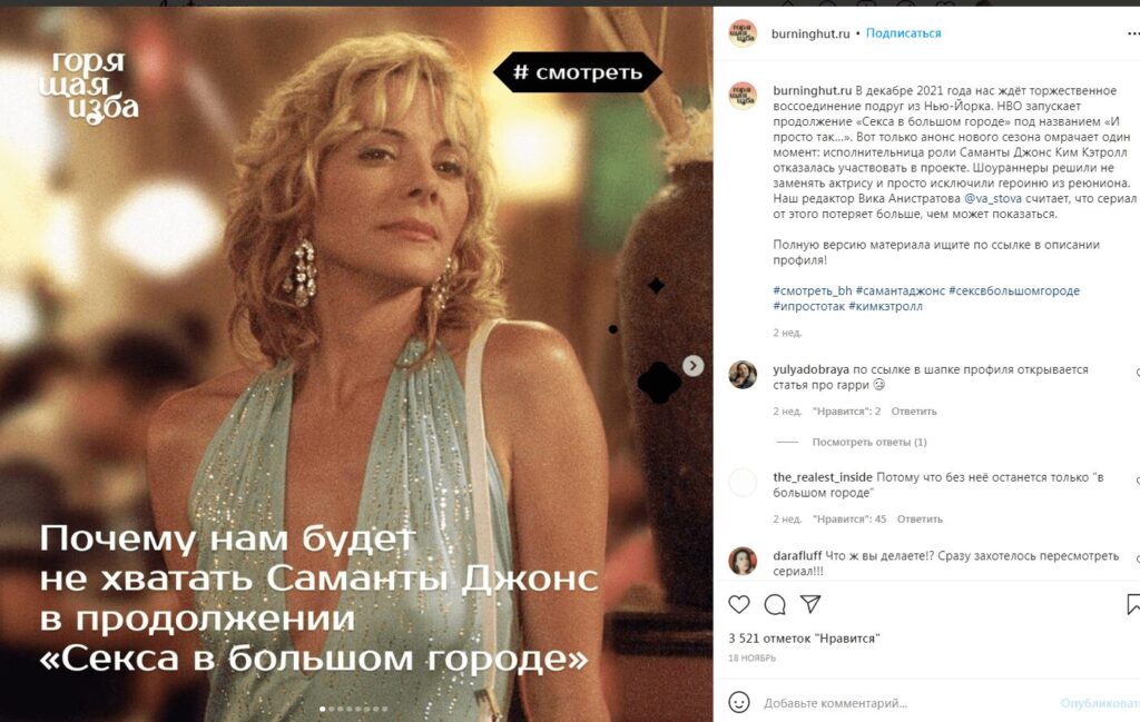 Публикации на темы, которые остро волнуют людей, часто выходят в рекомендованное. Например, сейчас много шума наделал выход продолжения “Секса в большом городе”. Многие критикуют актрис и сам сериал, но многие и поддерживают. Так или иначе эта тема вызывает бурные дискуссии, что хорошо для продвижения.