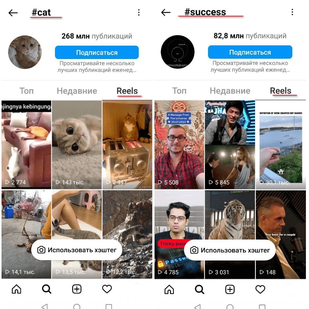 Важно использовать релевантные видео и вашему паблику теги. Также не стоит ставить ультрапопулярные хештеги, которые имеют сотни миллионов публикаций. Такие теги мгновенно опускаются вниз.