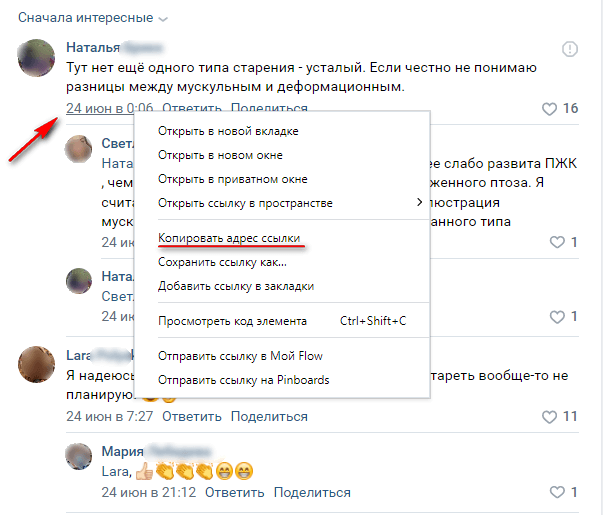 Как скопировать ссылку на комментарий
