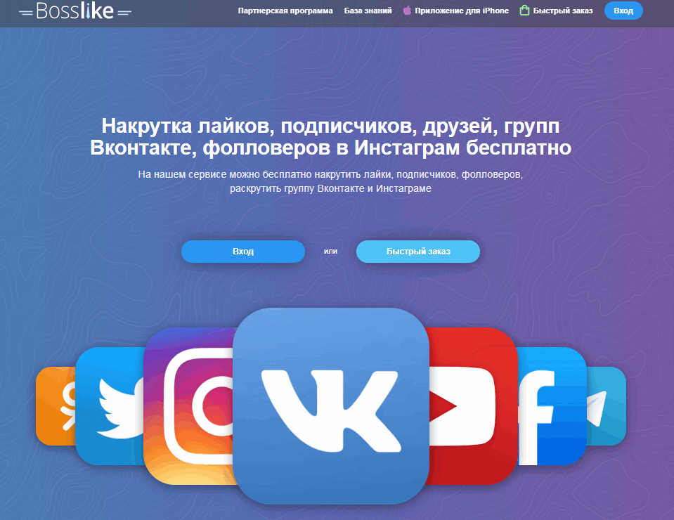Сервис по продвижению в социальных сетей, который функционирует с 2011 года. Предлагает разные способы увеличения лайков для групп, пабликов, записей, комментариев и фотографий. Отличительное преимущество сервиса — 100-дневная гарантия от списаний и блокировок.