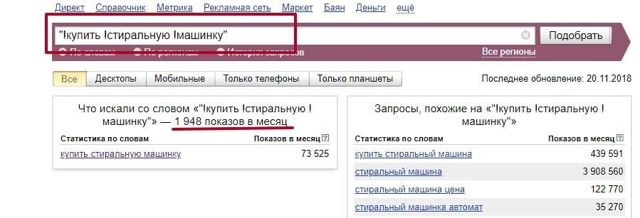 А чтобы понять действительное положение дел, просто добавьте кавычки и «!». С кавычками наш запрос уже выглядит не столь феерично – всего три с небольших тысячи показов: