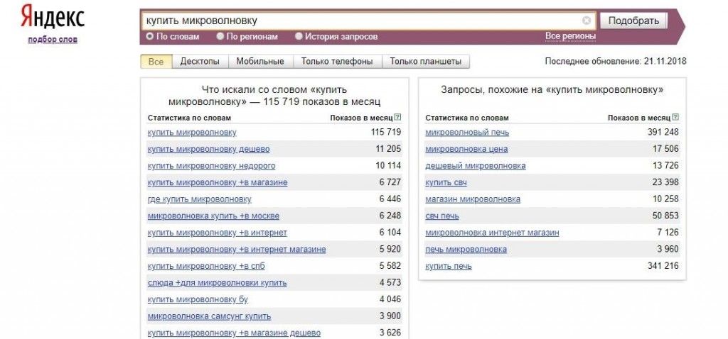 Попробуйте сами ввести несколько разных запросов. Теперь, когда будете говорить с клиентским менеджером, сразу поймете, привирает или говорит правду специалист.
