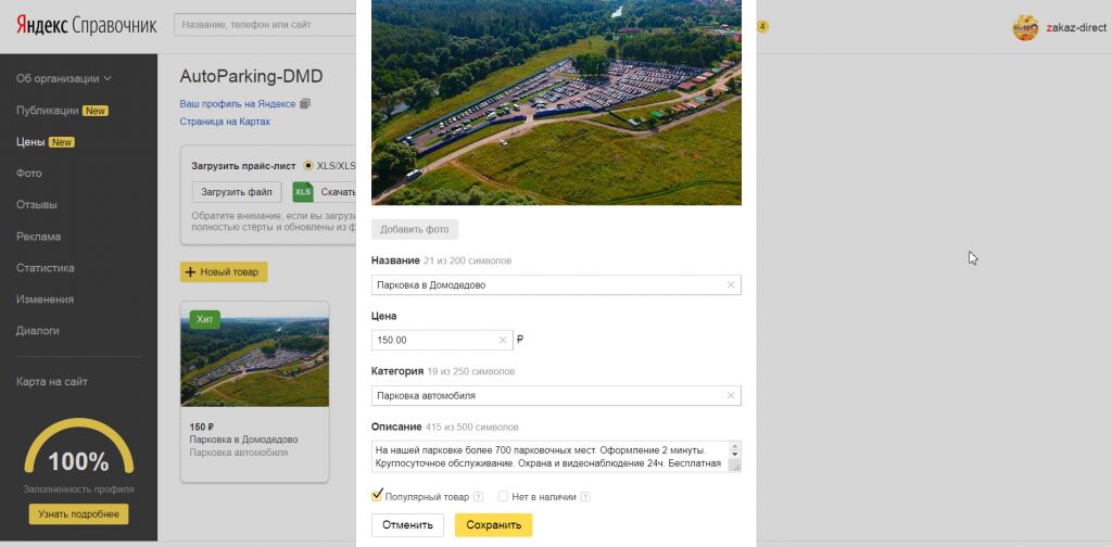 Публикация в яндекс справочнике