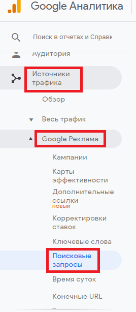 Для проработки минус-слов таким способом, на вашем сайте должен быть установлен счетчик Google Analytics.