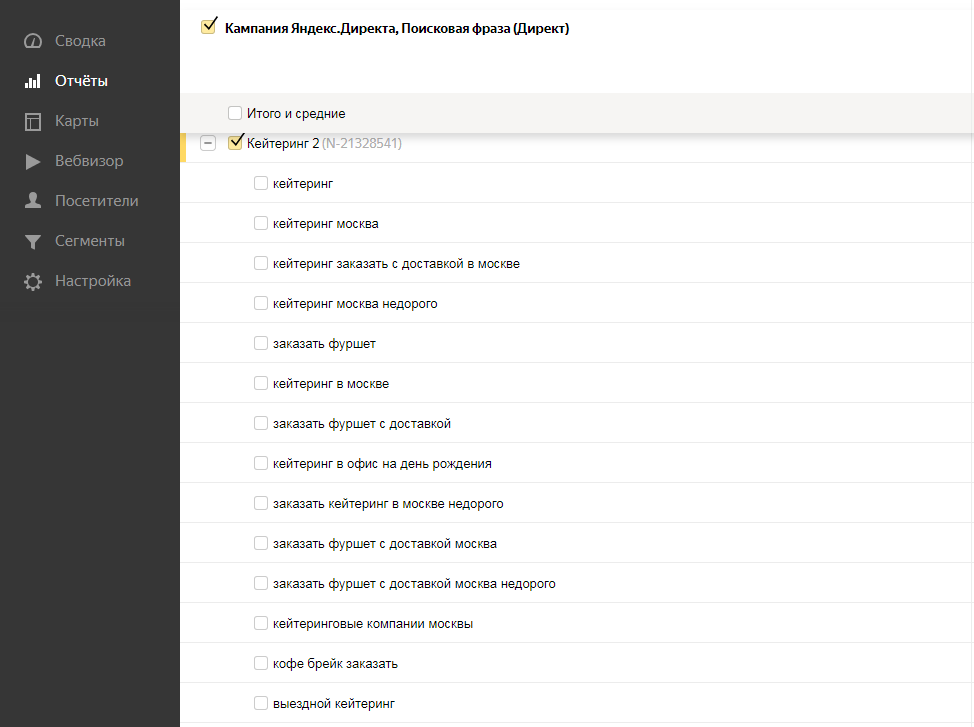 Для проработки минус-слов таким способом на вашем сайте должен быть установлен счетчик Яндекс. Метрики.