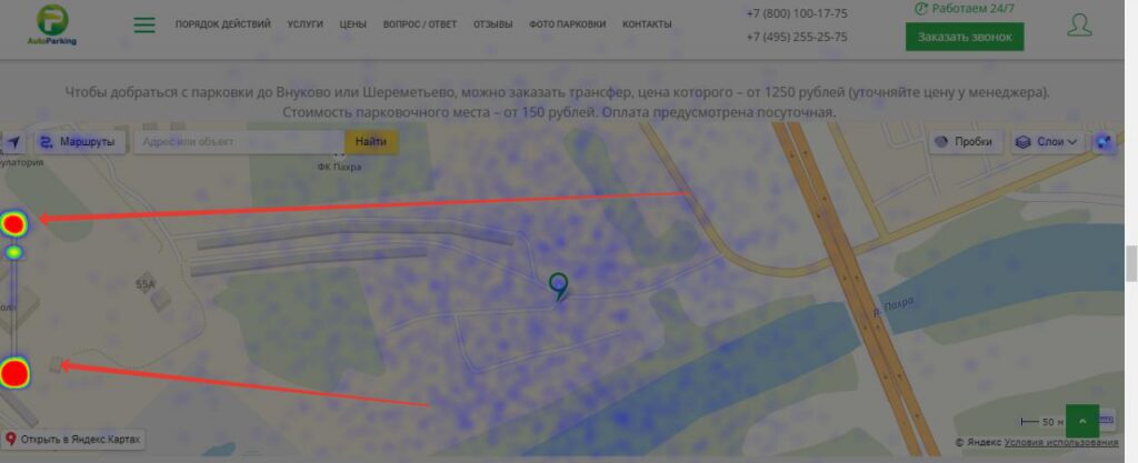 Среди массы компаний, с которыми мы сотрудничаем и помогаем развивать бизнес, есть клиент по контекстной рекламе и SEO — https://autoparking-dmd.ru. Не так давно мы обновили этот сайт и теперь пристально следим за поведением посетителей ресурса: