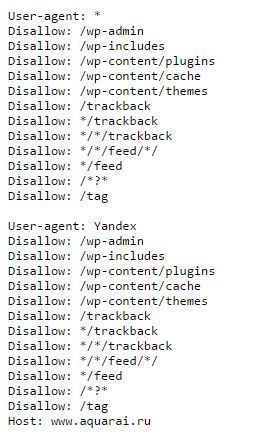 — Откройте robots.txt по ссылке http://aquarai.ru/robots.txt. Содержимое выглядит так, к примеру: