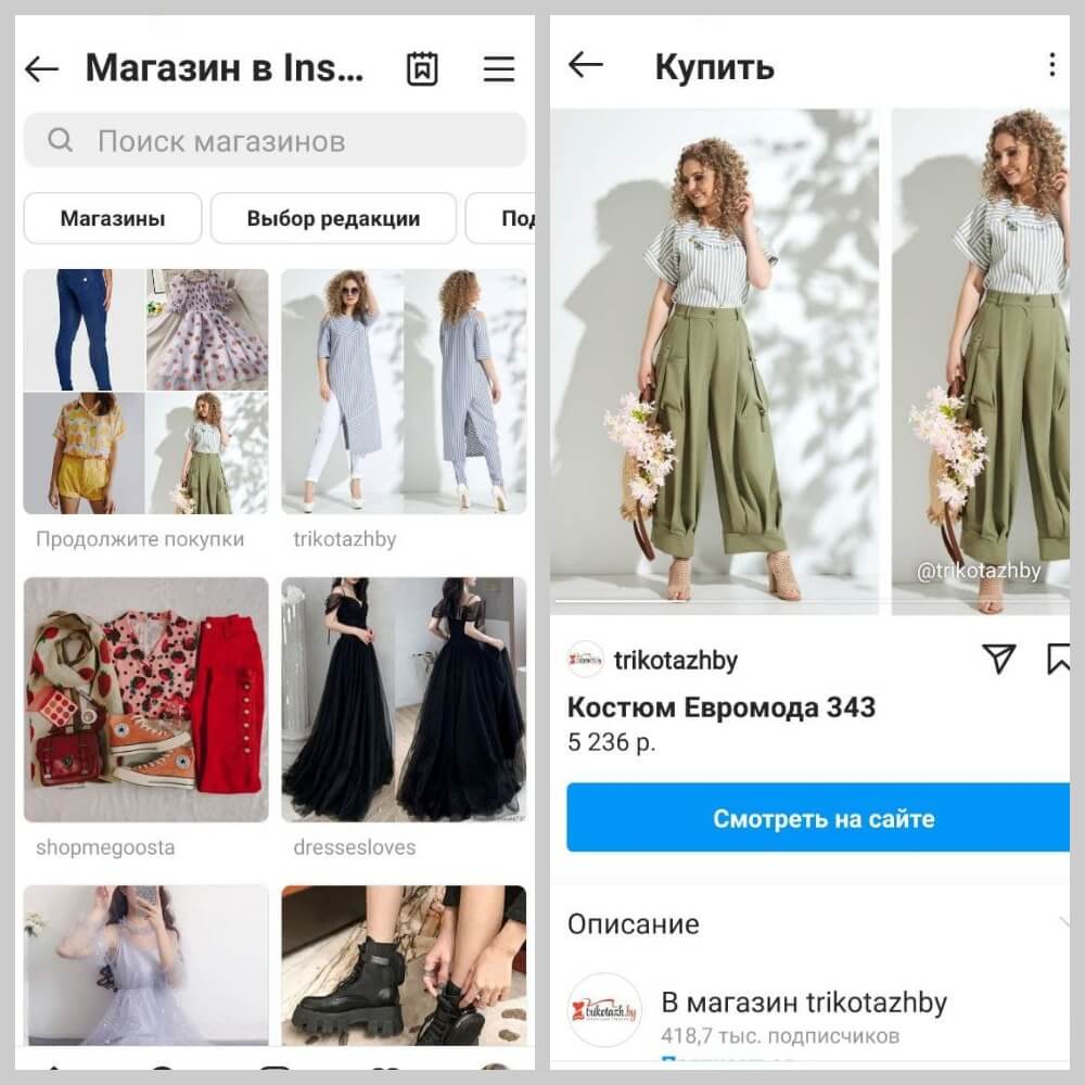 Клиенты смогут просматривать ваш товар в Инстаграм или Facebook. Чтобы узнать больше информации и сделать заказ, им нужно перейти на ваш сайт (в США, например, сделать покупки можно внутри приложения).