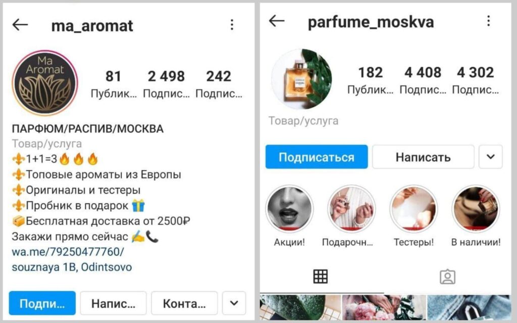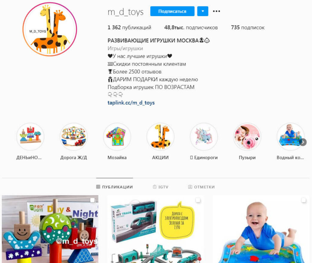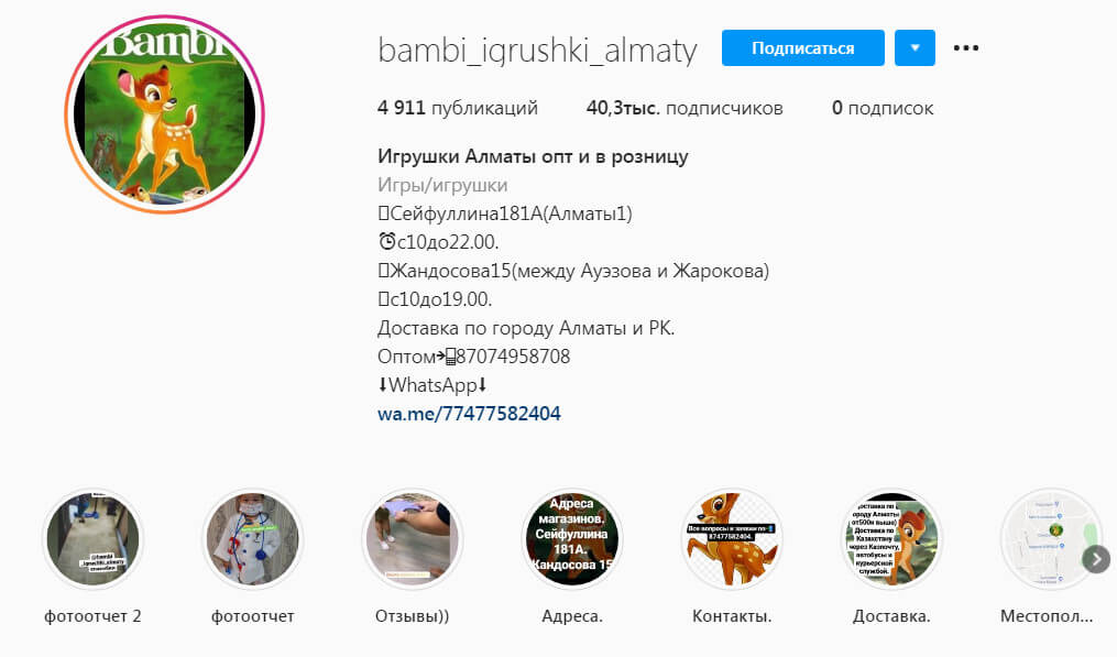 - Есть мультиссылка (или ссылка на сайт) и/или вечные сториз, где указан ассортимент, прайс, отзывы, контакты и пр. важная информация.