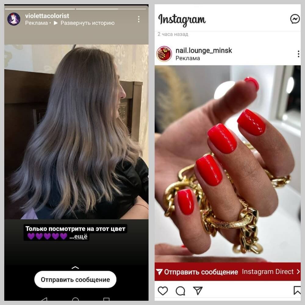 Реклама может запускаться в ленту или сториз. Оба варианты хороши, а какой лучше, покажут только тесты. Заметим, что реклама в Историях лучше привлекает внимание, так как занимает весь экран целиком.