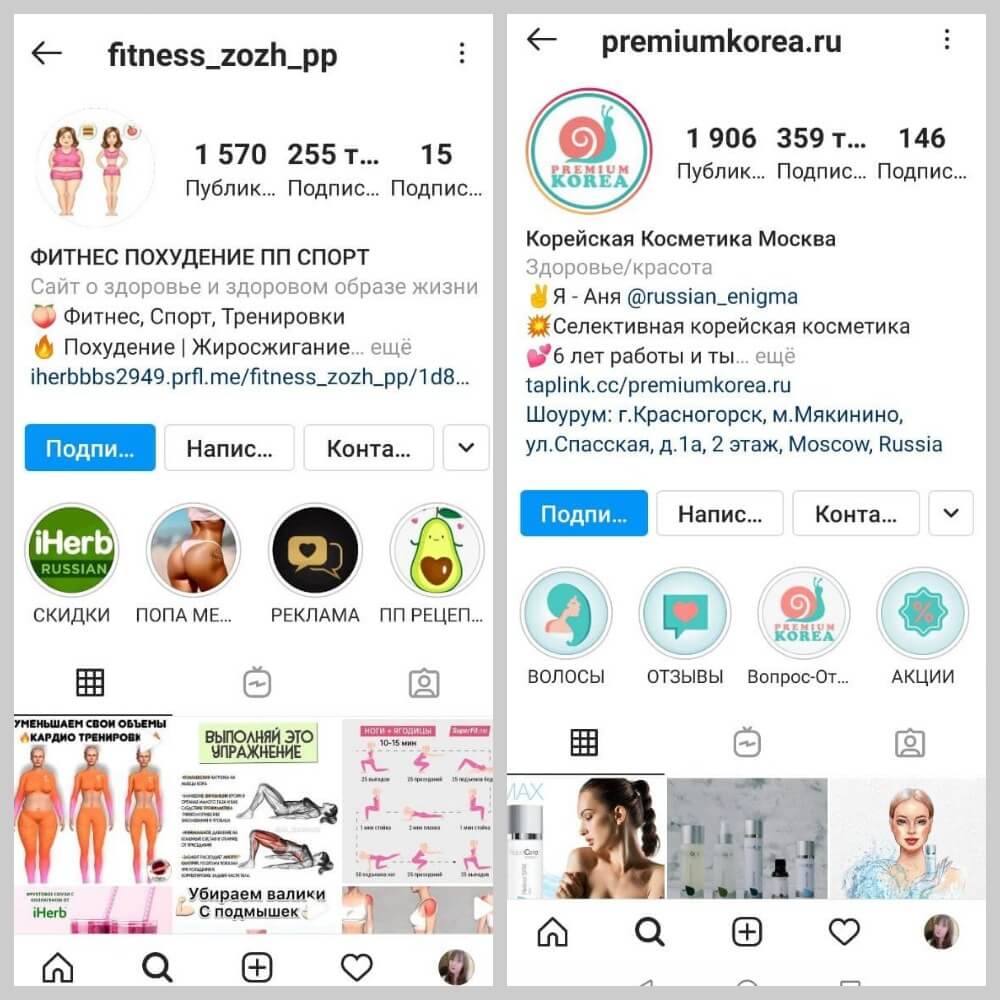 На примере ниже обе девушки помогают другим похудеть. Одна сделала упор на качественное сопровождение и перестройку привычек, а вторая выбрала узкую нишу, в которой нет аналогичного предложения (по крайней мере мы найти не смогли). Это и есть пример удачного позиционирования.