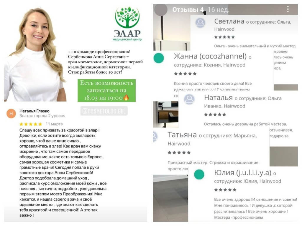 - скриншоты отзывов;