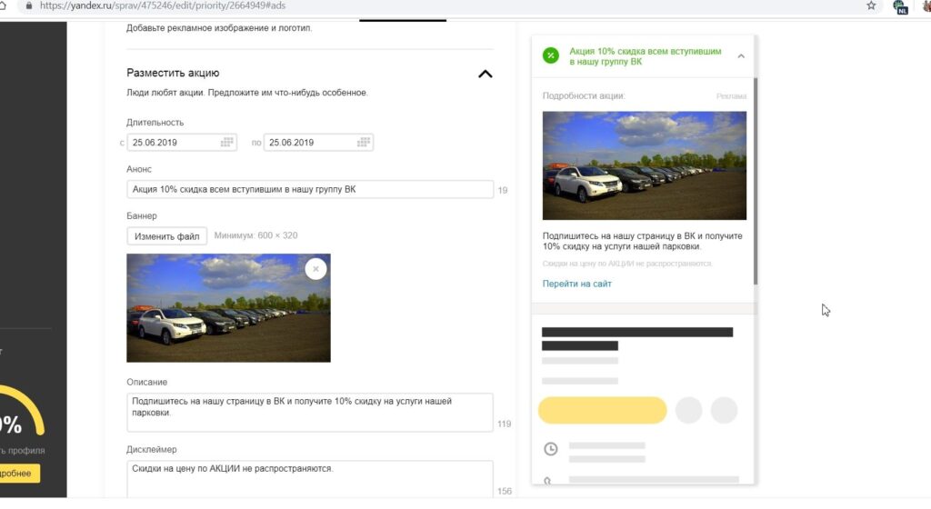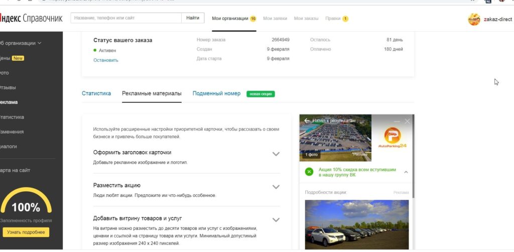 Перед запуском приоритетного размещения профиль компании был заполнен в соответствии с требованиями Яндекса. Результат – успешное прохождение модерации.