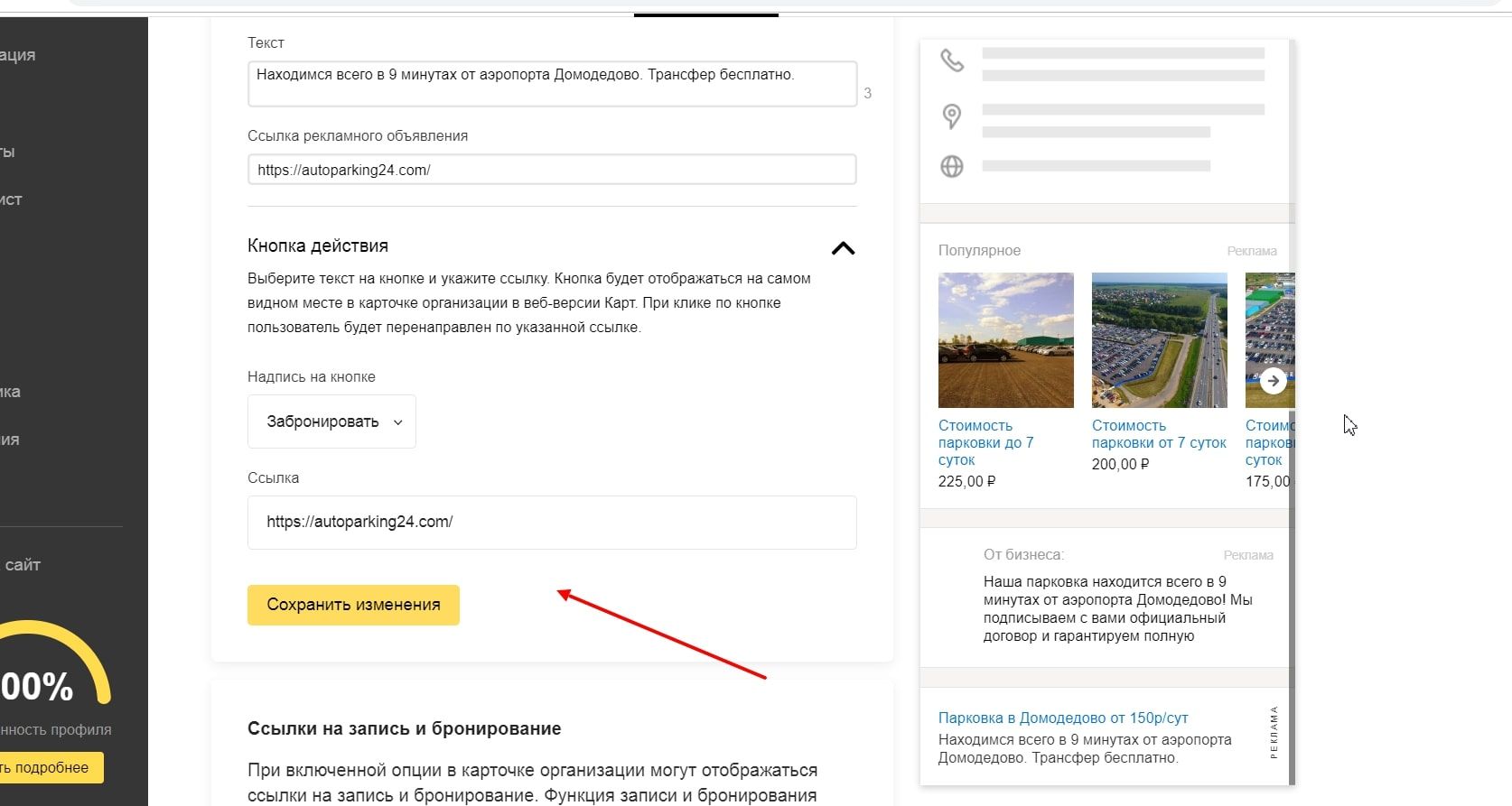Кейс по размещению в Справочнике компании, предоставляющей услуги автопарковки