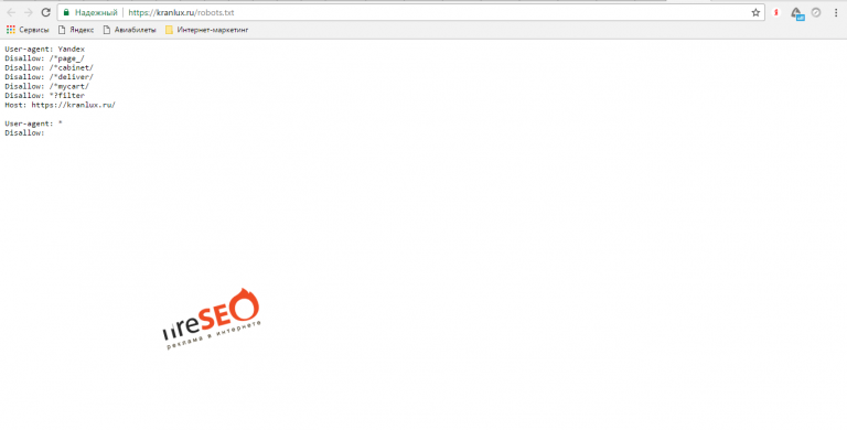 Для того, чтобы наш сайт Kranlux был проиндексирован как можно быстрее, первым делом мы добавили страницу https://kranlux.ru/robots.txt