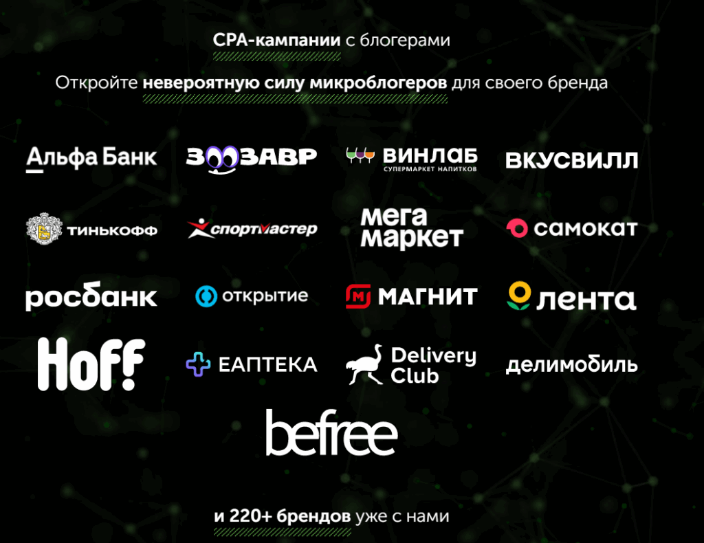 Perfluence — еще один сервис, в котором можно проводить CPA-кампании с блогерами. Рекламодатели платят только за результат, поэтому слив бюджета исключен.