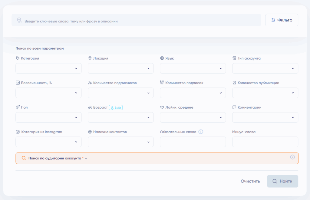 У TrendHero самая большая база блогеров Инстаграма*, среди которых есть как микроинфлюенсеры, так и многомиллионные аккаунты. Поиск реализован по следующим критериям: