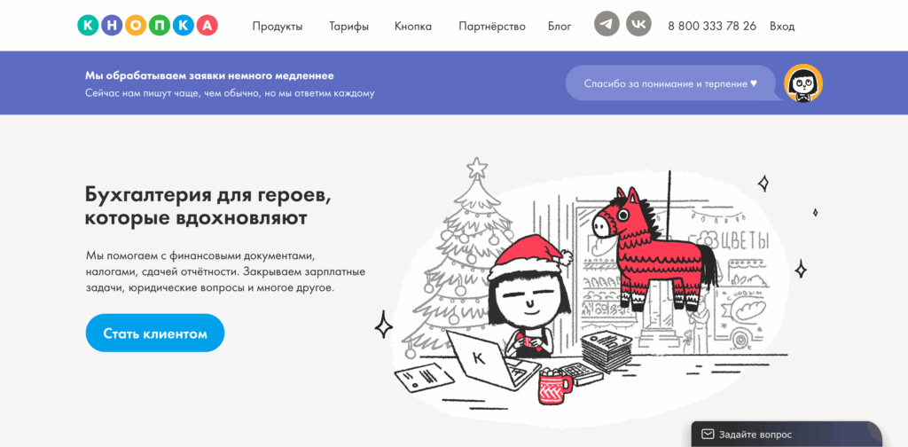 Кнопка предоставляет 100% финансовую гарантию и страхование профессиональной ответственности на сумму до 50 миллионов рублей, покрывающее штрафы и пени по ошибкам сервиса. Компания берет на себя всю коммуникацию с налоговыми органами и другими государственными структурами.