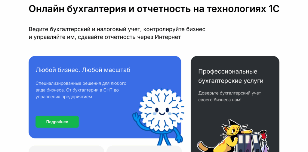 | Бухгалтерия | Базовая / Комфорт / Профи | На 1 юрлицо, до 100 сотрудников |