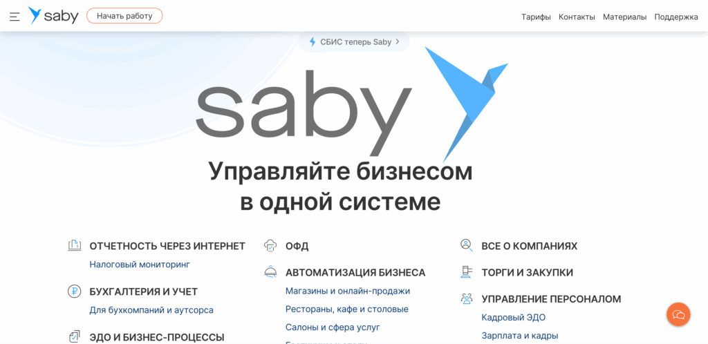 Saby — облачная экосистема от компании «Тензор» для комплексной автоматизации бизнеса. Платформа объединяет более 20 сервисов для управления бухгалтерией, кадрами, документооборотом и торговлей в едином интерфейсе.