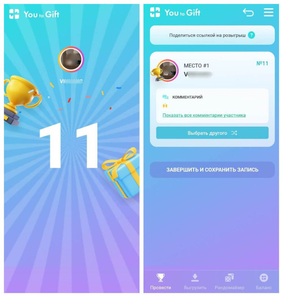 Как определить победителя гива с помощью сервиса You to Gift