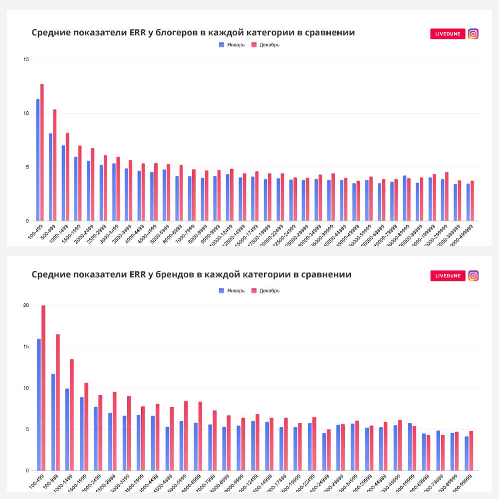 - А вот ERR (вовлеченность) — один из немногих показателей, который подрос, как у блогеров, так и у брендов.