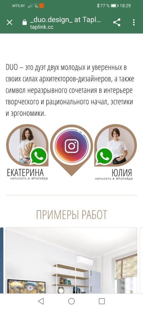 Таплинк (мультиссылка) – приложение к Instagram от внешних разработчиков. Это официальное API, которое не нарушает политику соцсети. Сервис создает сайт-прокладку, на котором размещается важная информация – ссылки на другие аккаунты, мессенджеры, сайт и пр.