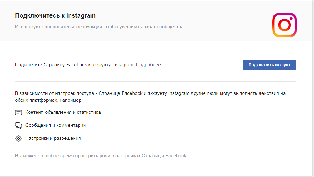 2. Привяжите Instagram к Facebook