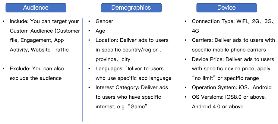 Возможности таргетинга следующие: