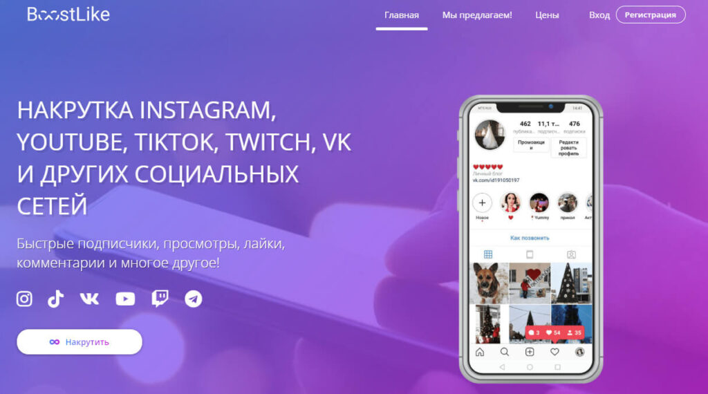 Сервис предоставляющий качественную и быструю накрутку для любой соцсети. По доступным ценам и с гарантией качества накручиваемой аудитории.