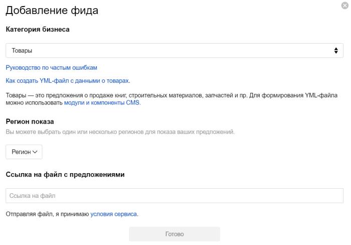Фид с товарами необходимо разместить в Вебмастере. Для этого потребуется выполнить несколько простых шагов: