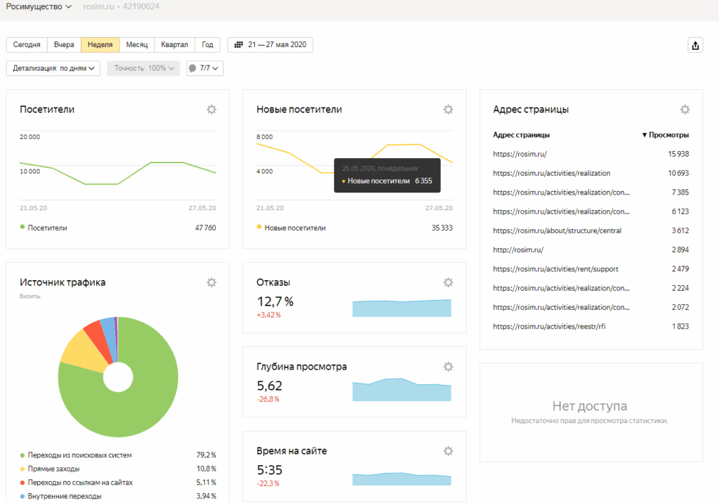 Официальные сайты органов государственной власти должны предоставлять открытую статистику посещаемости по количеству общих и уникальных посетителей, а также по отдельным страницам по часам, дням и месяцам.