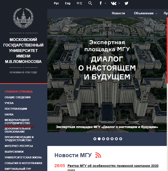 - «Международное сотрудничество», где нужно рассказать о заключенных и планируемых договорах с зарубежными организациями касательно образовательных и научных вопросов.