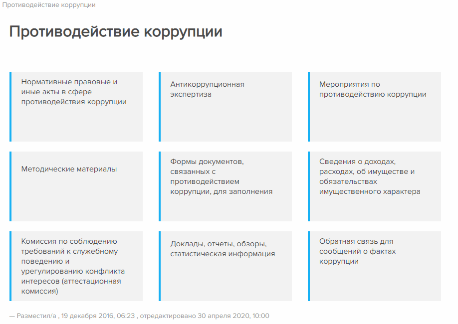 На главной странице должна висеть ссылка о противодействии коррупции.