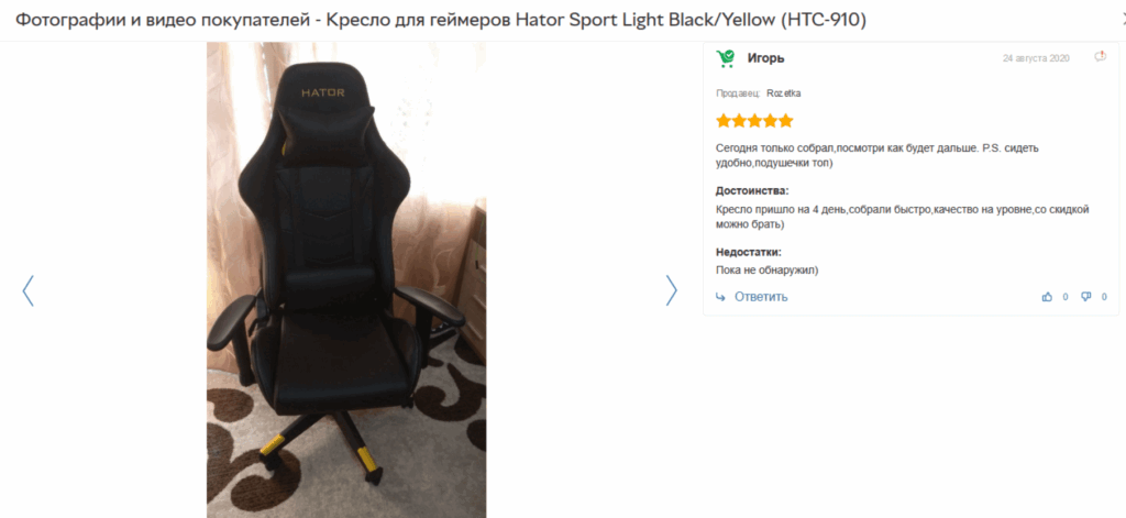 Пример отзыва с пользовательской фотографией товара