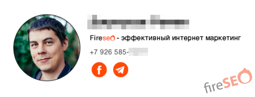 В этом файле — верстаете структуру своей подписи, вносите необходимые данные по макету и прописываете стили инлайн для каждого блока. В итоге получаете: