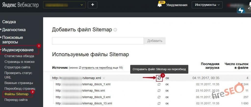 Рисунок: Отправить файл Sitemap на переобход с помощью Яндекс. Вебмастера