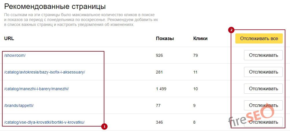Рисунок: Возможность следить за самыми важными страницами сайта с помощью Яндекс. Вебмастера