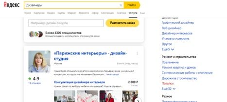 Специалистов находят по поиску, указав необходимую услугу (например, уборка квартир) или наименование специальности (дизайнеры).