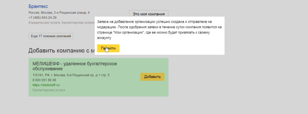 Сначала регистрируем карточку компании в Я.Справочнике: