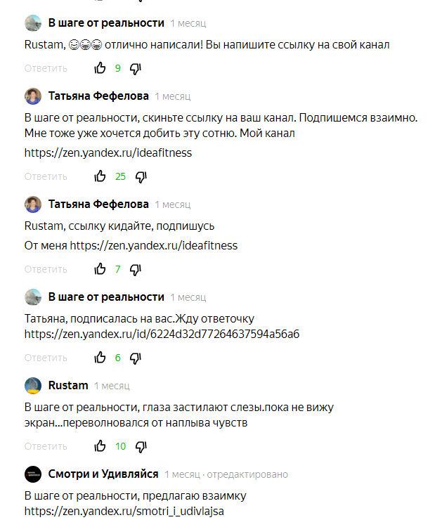Вы можете договариваться с другими авторами о взаимной подписке. Делать это можно в комментариях крупных каналов, где есть активность. Конечно, много подписок не получить, но собрать 100 человек и выйти на монетизацию реально.