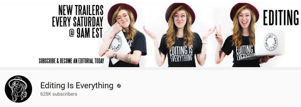 Дэни из Editing is Everything публикует контент каждую субботу в 9 утра по восточному времени. Она обязательно указывает это расписание в баннере своего канала, чтобы люди знали, когда ожидать новых видео.